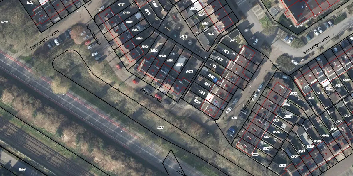 Spechtstraat 18 is gelegen op kadastraal perceel DVN00E2175. Deze kadastrale aanduiding is uniek en wordt gebruikt door het Kadaster om eigendomsrechten en andere zakelijke rechten vast te leggen. Het perceel maakt onderdeel uit van de kadastrale gemeente Duiven.
