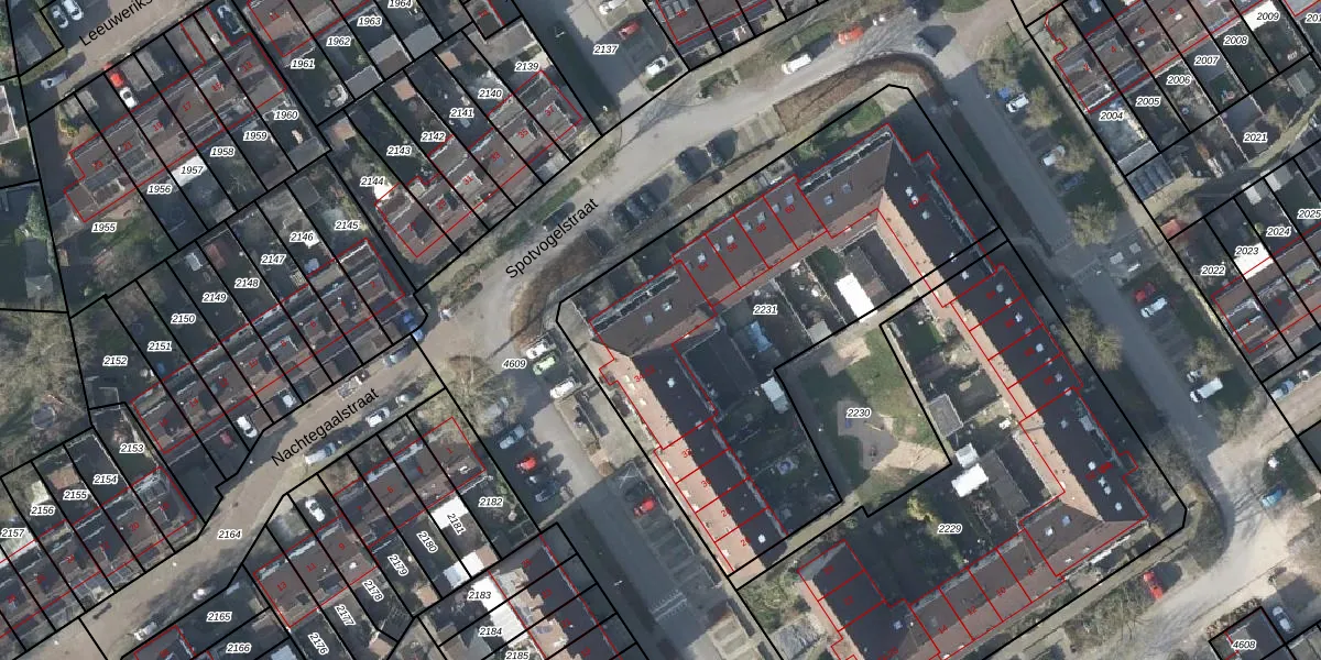 Het perceel waarop Spotvogelstraat 40 staat heeft een oppervlakte van 2200 m². Dit is een zeer groot perceel. De perceeloppervlakte wordt geregistreerd door het Kadaster. Gedetailleerde informatie over de maten van dit perceel kunt u vinden in het rapport Kadastrale kaart met maatvoering van Spotvogelstraat 40.