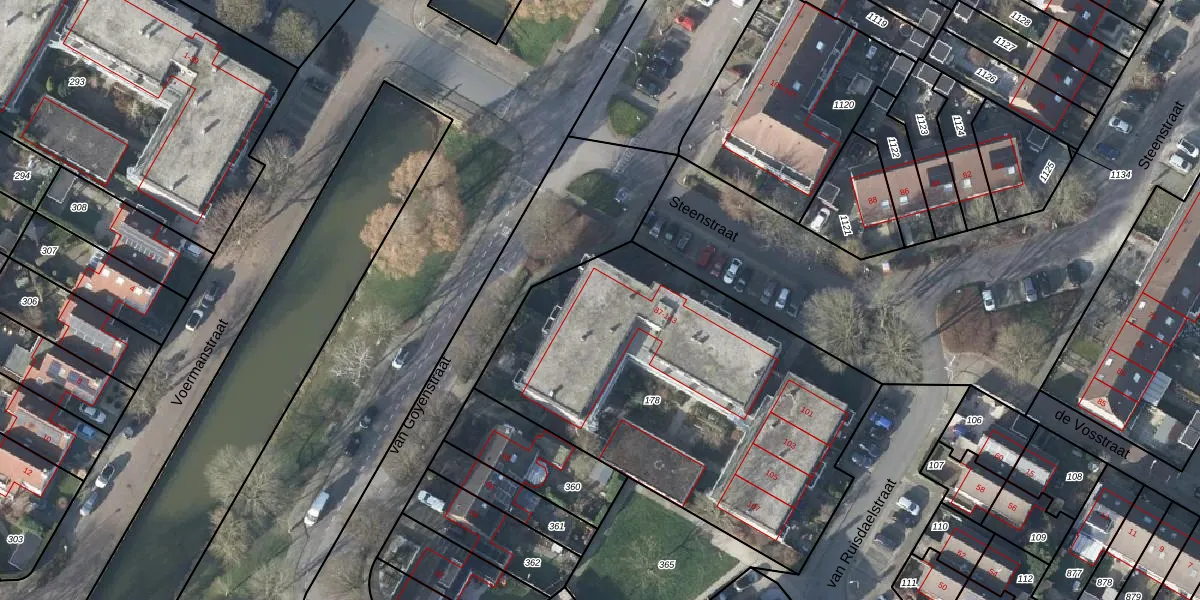 Het perceel waarop Steenstraat 109 staat heeft een oppervlakte van 2008 m². Dit is een zeer groot perceel. De perceeloppervlakte wordt geregistreerd door het Kadaster. Gedetailleerde informatie over de maten van dit perceel kunt u vinden in het rapport Kadastrale kaart met maatvoering van Steenstraat 109.