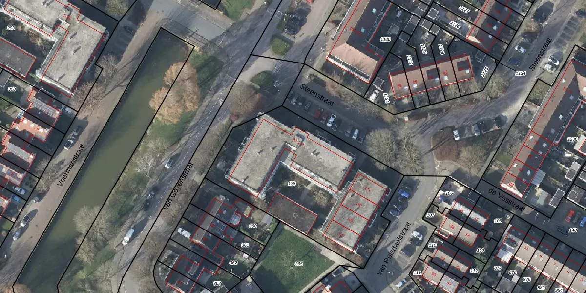 Het perceel waarop Steenstraat 115 staat heeft een oppervlakte van 2008 m². Dit is een zeer groot perceel. De perceeloppervlakte wordt geregistreerd door het Kadaster. Gedetailleerde informatie over de maten van dit perceel kunt u vinden in het rapport Kadastrale kaart met maatvoering van Steenstraat 115.