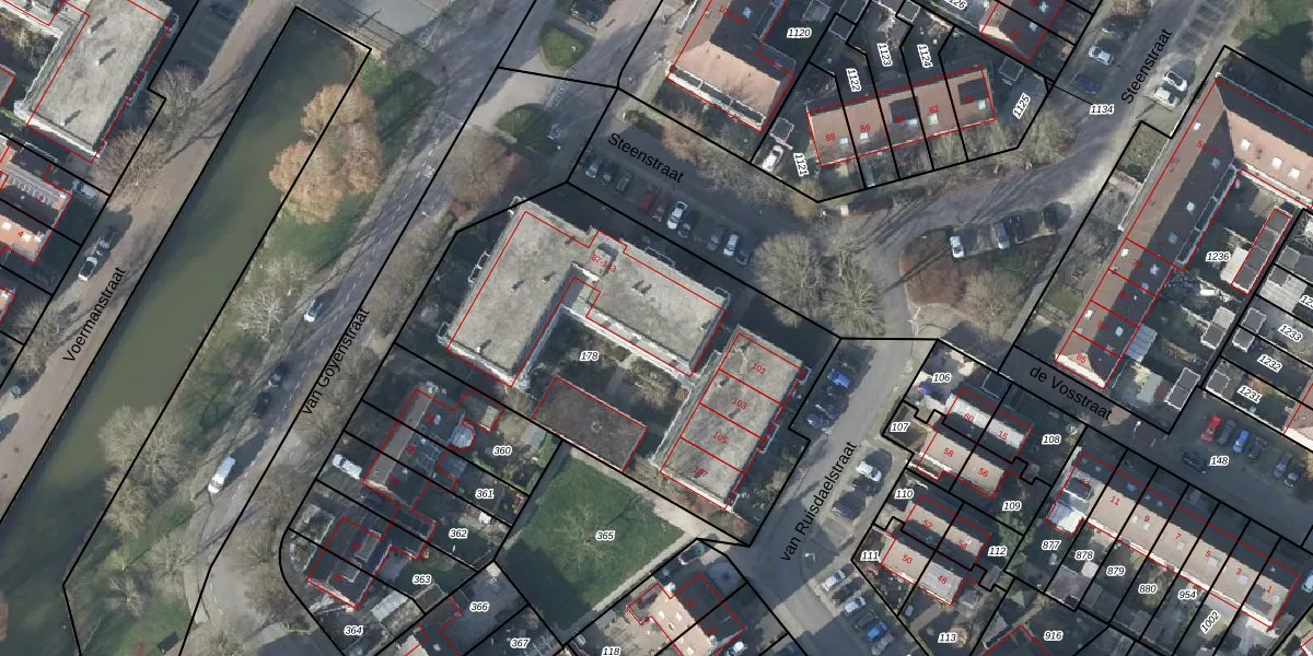 Het perceel waarop Steenstraat 133 staat heeft een oppervlakte van 2008 m². Dit is een zeer groot perceel. De perceeloppervlakte wordt geregistreerd door het Kadaster. Gedetailleerde informatie over de maten van dit perceel kunt u vinden in het rapport Kadastrale kaart met maatvoering van Steenstraat 133.
