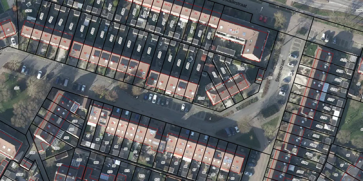 Het perceel waarop Steenstraat 22 staat heeft een oppervlakte van 163 m². Dit is een middelgroot perceel. De perceeloppervlakte wordt geregistreerd door het Kadaster. Gedetailleerde informatie over de maten van dit perceel kunt u vinden in het rapport Kadastrale kaart met maatvoering van Steenstraat 22.
