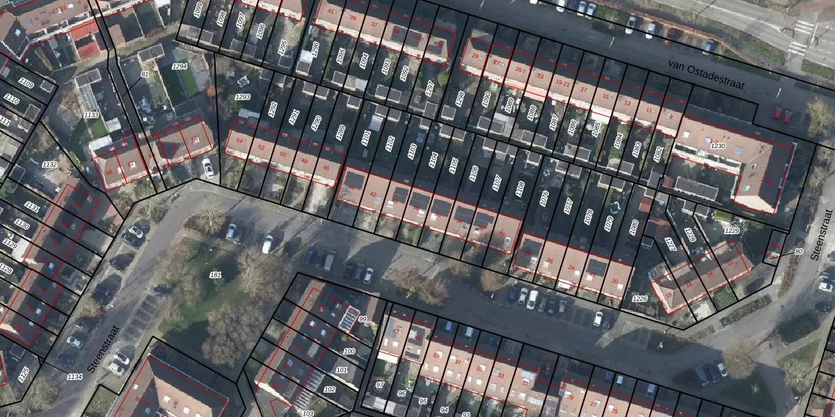 Het perceel waarop Steenstraat 38 staat heeft een oppervlakte van 163 m². Dit is een middelgroot perceel. De perceeloppervlakte wordt geregistreerd door het Kadaster. Gedetailleerde informatie over de maten van dit perceel kunt u vinden in het rapport Kadastrale kaart met maatvoering van Steenstraat 38.
