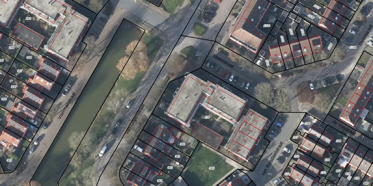 Het perceel waarop Steenstraat 99 staat heeft een oppervlakte van 2008 m². Dit is een zeer groot perceel. De perceeloppervlakte wordt geregistreerd door het Kadaster. Gedetailleerde informatie over de maten van dit perceel kunt u vinden in het rapport Kadastrale kaart met maatvoering van Steenstraat 99.