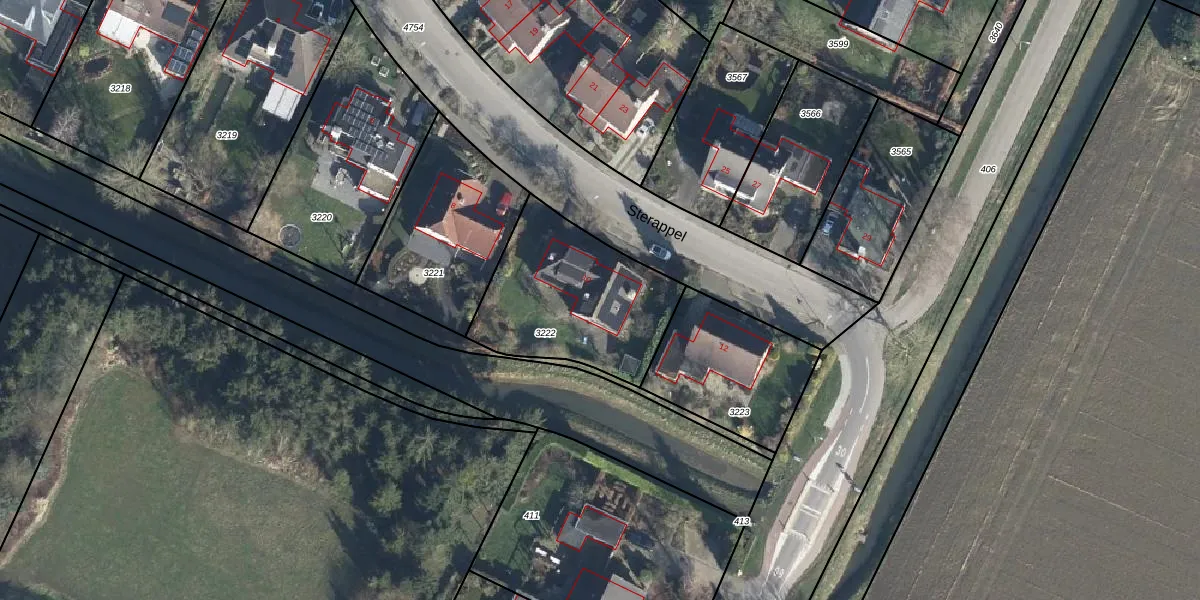 Sterappel 10 is gelegen op kadastraal perceel DVN00E3222. Deze kadastrale aanduiding is uniek en wordt gebruikt door het Kadaster om eigendomsrechten en andere zakelijke rechten vast te leggen. Het perceel maakt onderdeel uit van de kadastrale gemeente Duiven.