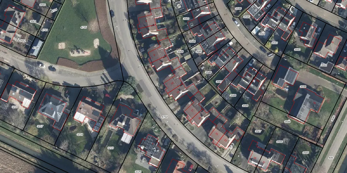 Het adres is gelegen op perceel 3568 in de sectie E en de kadastrale gemeente Duiven. De kadastrale aanduiding is aldus DVN00-E-3568. Het perceel is met 3550 m² relatief groot. Het gemiddelde ligt in de kadastrale gemeente Duiven op 2659,67 m². De grootste perceeloppervlakte in de kadastrale gemeente is 22,4 ha. De kleinste oppervlakte bedraagt 0 m². Er zijn 14 adressen aanwezig op het perceel. In de Basisregistratie Kadaster (BRK) werden de grenzen van het perceel geregistreerd op 23-07-2009.