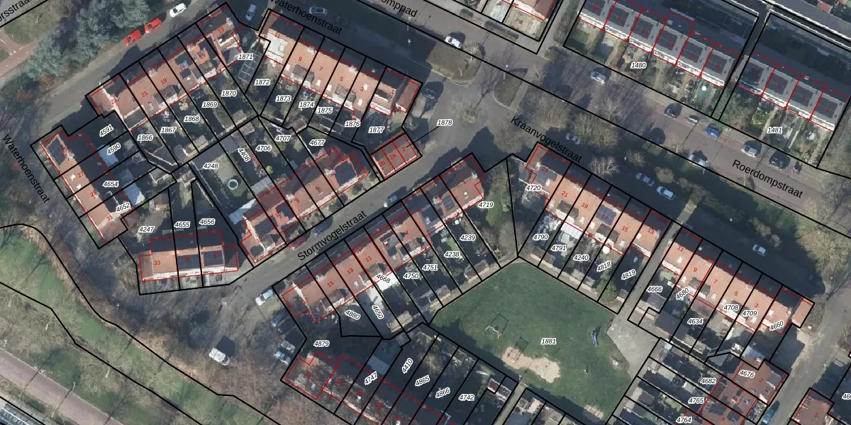 Stormvogelstraat 5 is gelegen op kadastraal perceel DVN00E4238. Deze kadastrale aanduiding is uniek en wordt gebruikt door het Kadaster om eigendomsrechten en andere zakelijke rechten vast te leggen. Het perceel maakt onderdeel uit van de kadastrale gemeente Duiven.