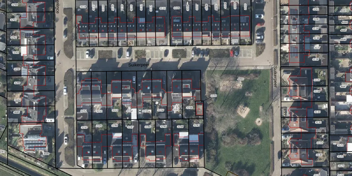 Suikerpeer 35 is gelegen op kadastraal perceel DVN00E3157. Deze kadastrale aanduiding is uniek en wordt gebruikt door het Kadaster om eigendomsrechten en andere zakelijke rechten vast te leggen. Het perceel maakt onderdeel uit van de kadastrale gemeente Duiven.