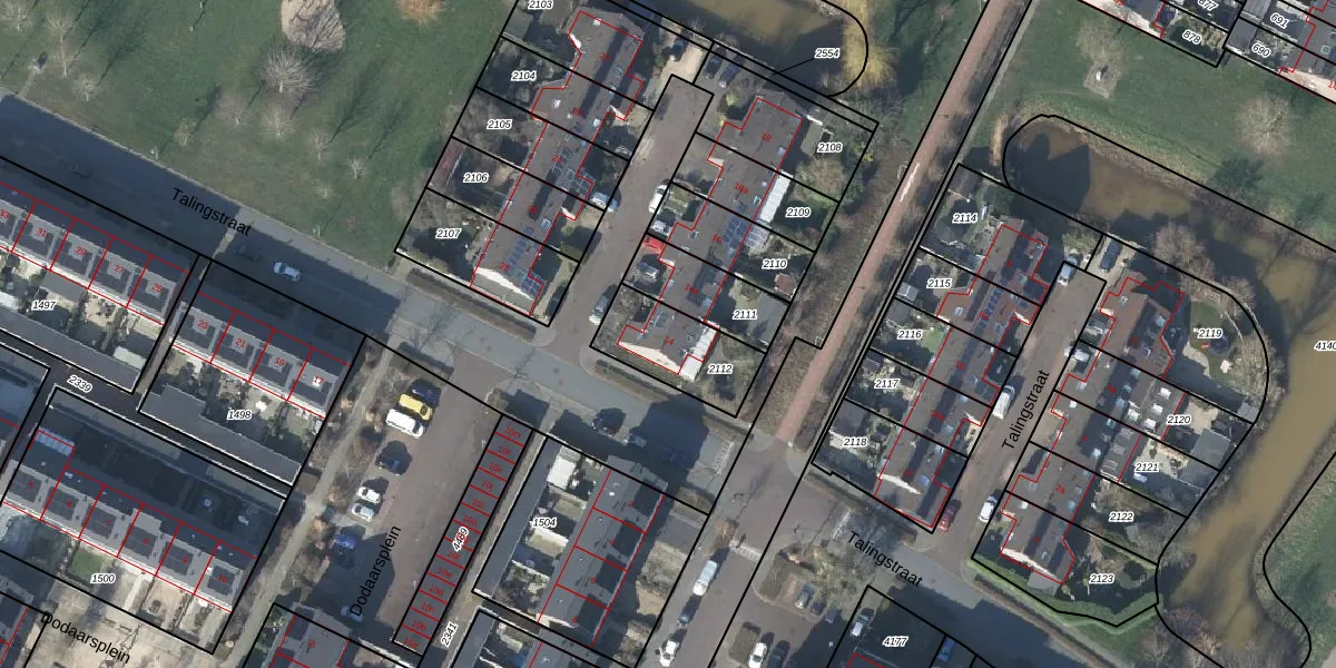 Talingstraat 14 is gelegen op kadastraal perceel DVN00E2112. Deze kadastrale aanduiding is uniek en wordt gebruikt door het Kadaster om eigendomsrechten en andere zakelijke rechten vast te leggen. Het perceel maakt onderdeel uit van de kadastrale gemeente Duiven.