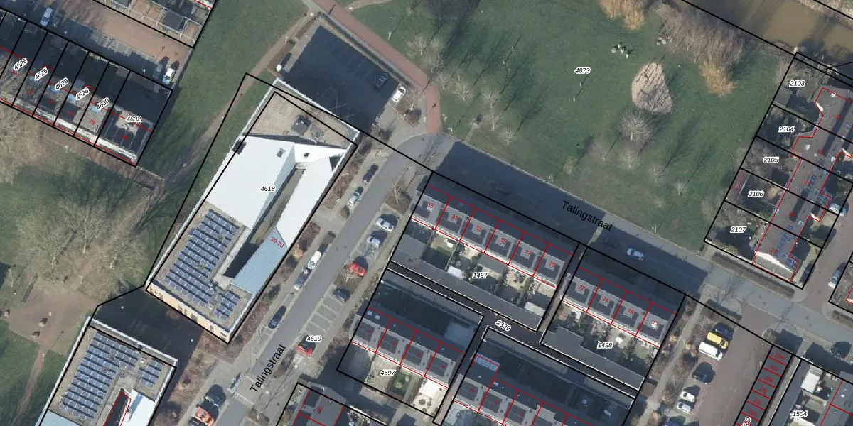 Talingstraat 35 is gelegen op kadastraal perceel DVN00E1497. Deze kadastrale aanduiding is uniek en wordt gebruikt door het Kadaster om eigendomsrechten en andere zakelijke rechten vast te leggen. Het perceel maakt onderdeel uit van de kadastrale gemeente Duiven.