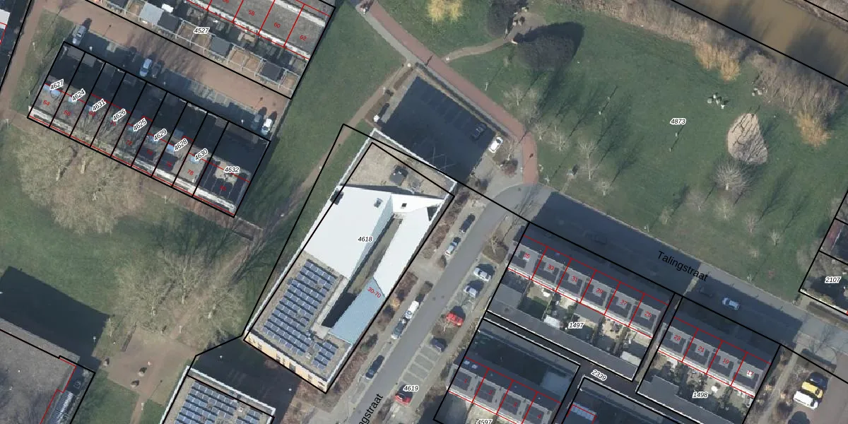 Talingstraat 40 is gelegen op kadastraal perceel DVN00E4618. Deze kadastrale aanduiding is uniek en wordt gebruikt door het Kadaster om eigendomsrechten en andere zakelijke rechten vast te leggen. Het perceel maakt onderdeel uit van de kadastrale gemeente Duiven.