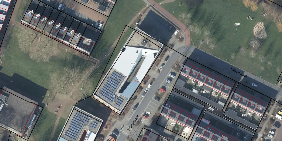 Talingstraat 48 is gelegen op kadastraal perceel DVN00E4618. Deze kadastrale aanduiding is uniek en wordt gebruikt door het Kadaster om eigendomsrechten en andere zakelijke rechten vast te leggen. Het perceel maakt onderdeel uit van de kadastrale gemeente Duiven.