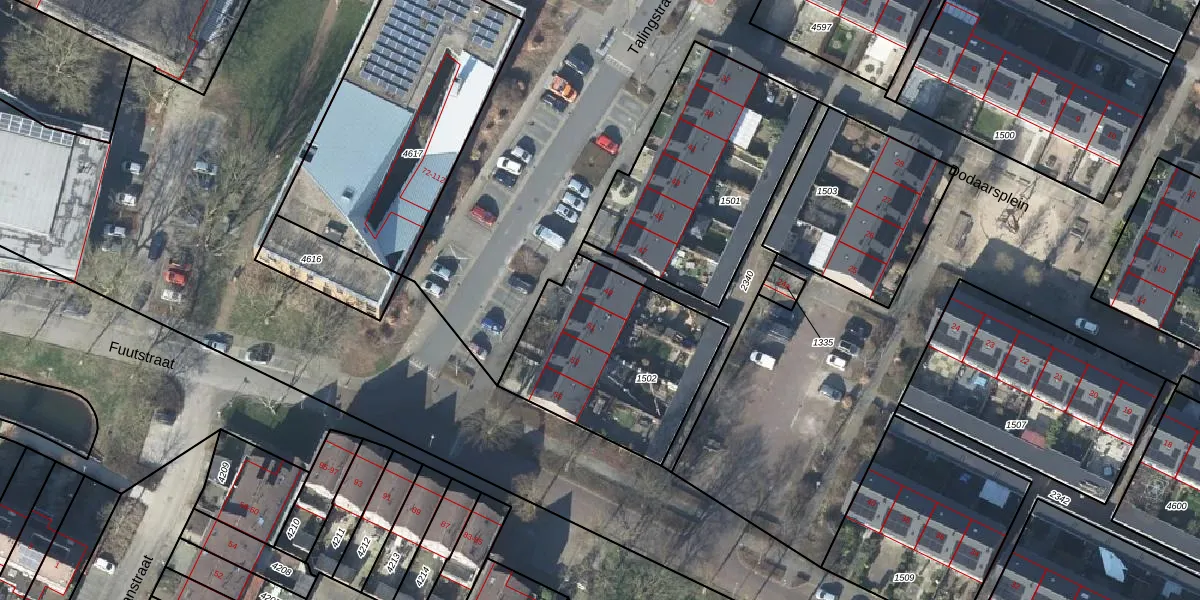 Het perceel waarop Talingstraat 49 staat heeft een oppervlakte van 772 m². Dit is een groot perceel. De perceeloppervlakte wordt geregistreerd door het Kadaster. Gedetailleerde informatie over de maten van dit perceel kunt u vinden in het rapport Kadastrale kaart met maatvoering van Talingstraat 49.
