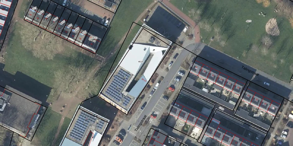 Talingstraat 50 is gelegen op kadastraal perceel DVN00E4618. Deze kadastrale aanduiding is uniek en wordt gebruikt door het Kadaster om eigendomsrechten en andere zakelijke rechten vast te leggen. Het perceel maakt onderdeel uit van de kadastrale gemeente Duiven.
