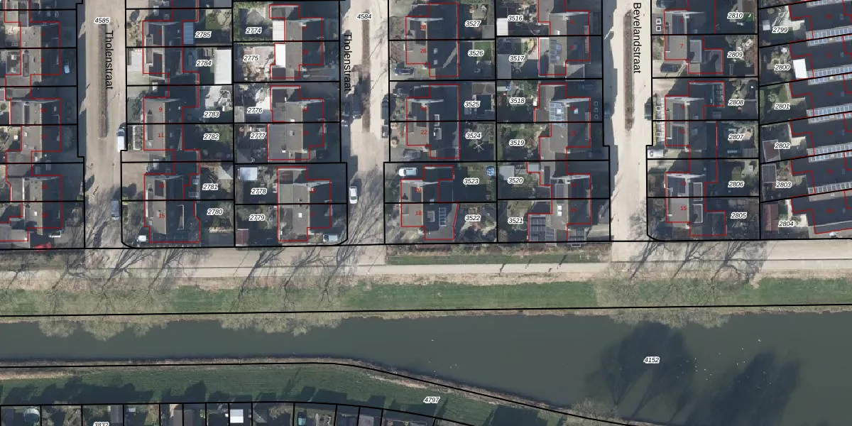 Het perceel waarop Tholenstraat 18 staat heeft een oppervlakte van 253 m². Dit is een middelgroot perceel. De perceeloppervlakte wordt geregistreerd door het Kadaster. Gedetailleerde informatie over de maten van dit perceel kunt u vinden in het rapport Kadastrale kaart met maatvoering van Tholenstraat 18.