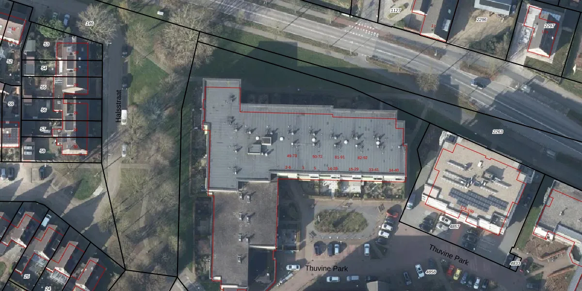Het adres is gelegen op perceel 4858 in de sectie E en de kadastrale gemeente Duiven. De kadastrale aanduiding is aldus DVN00-E-4858. Het perceel is met 1,6 ha relatief groot. Het gemiddelde ligt in de kadastrale gemeente Duiven op 2658,46 m². Het grootste perceel in de kadastrale gemeente is 22,4 ha. Het kleinste perceel heeft een oppervlakte van 0 m². Op het perceel zijn 141 adressen aanwezig. In de Basisregistratie Kadaster (BRK) werden de grenzen van het perceel geregistreerd op 14-08-2023.