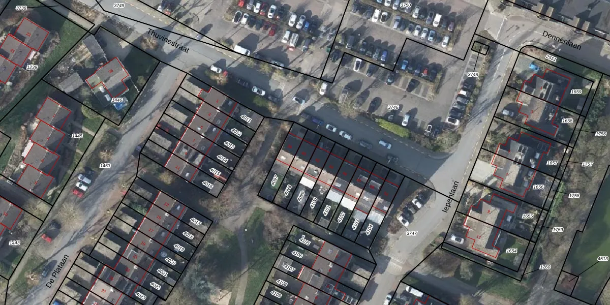 Thuvinestraat 40 is gelegen op kadastraal perceel DVN00E4098. Deze kadastrale aanduiding is uniek en wordt gebruikt door het Kadaster om eigendomsrechten en andere zakelijke rechten vast te leggen. Het perceel maakt onderdeel uit van de kadastrale gemeente Duiven.