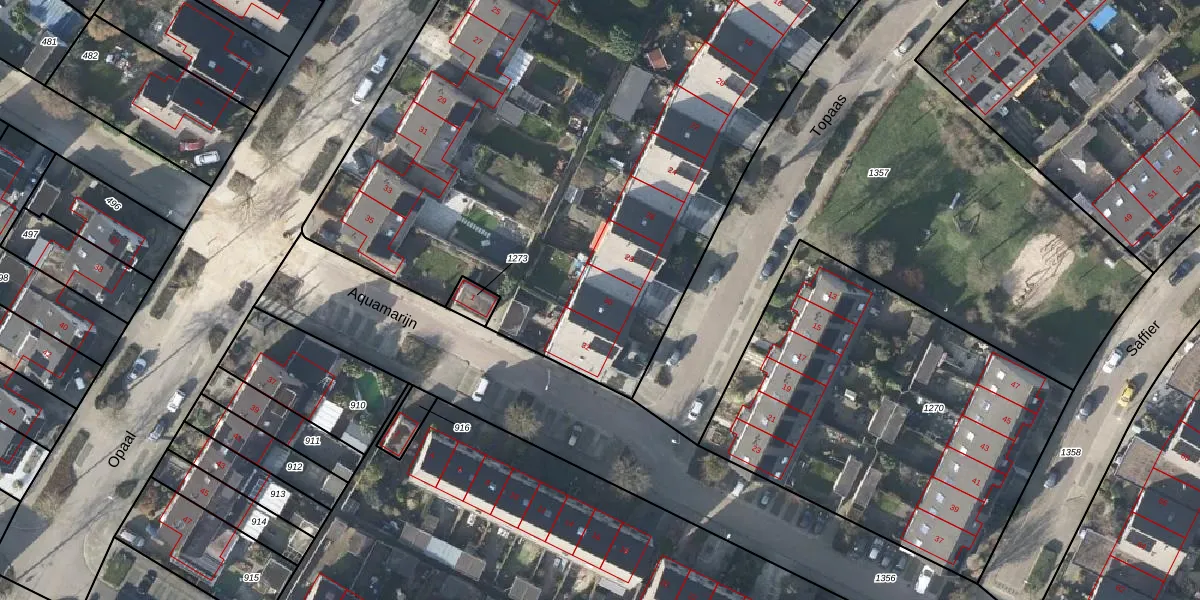 Het perceel waarop Topaas 30 staat heeft een oppervlakte van 1,0 ha. Dit is een zeer groot perceel. De perceeloppervlakte wordt geregistreerd door het Kadaster. Gedetailleerde informatie over de maten van dit perceel kunt u vinden in het rapport Kadastrale kaart met maatvoering van Topaas 30.