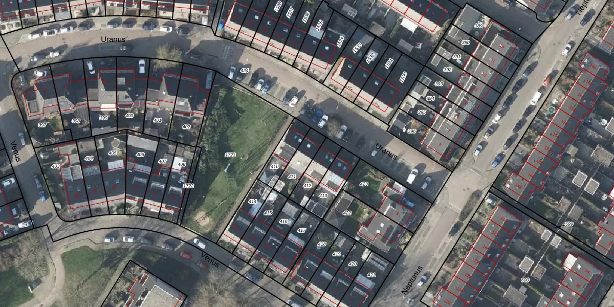 Het perceel waarop Uranus 5 staat heeft een oppervlakte van 140 m². Dit is een middelgroot perceel. De perceeloppervlakte wordt geregistreerd door het Kadaster. Gedetailleerde informatie over de maten van dit perceel kunt u vinden in het rapport Kadastrale kaart met maatvoering van Uranus 5.