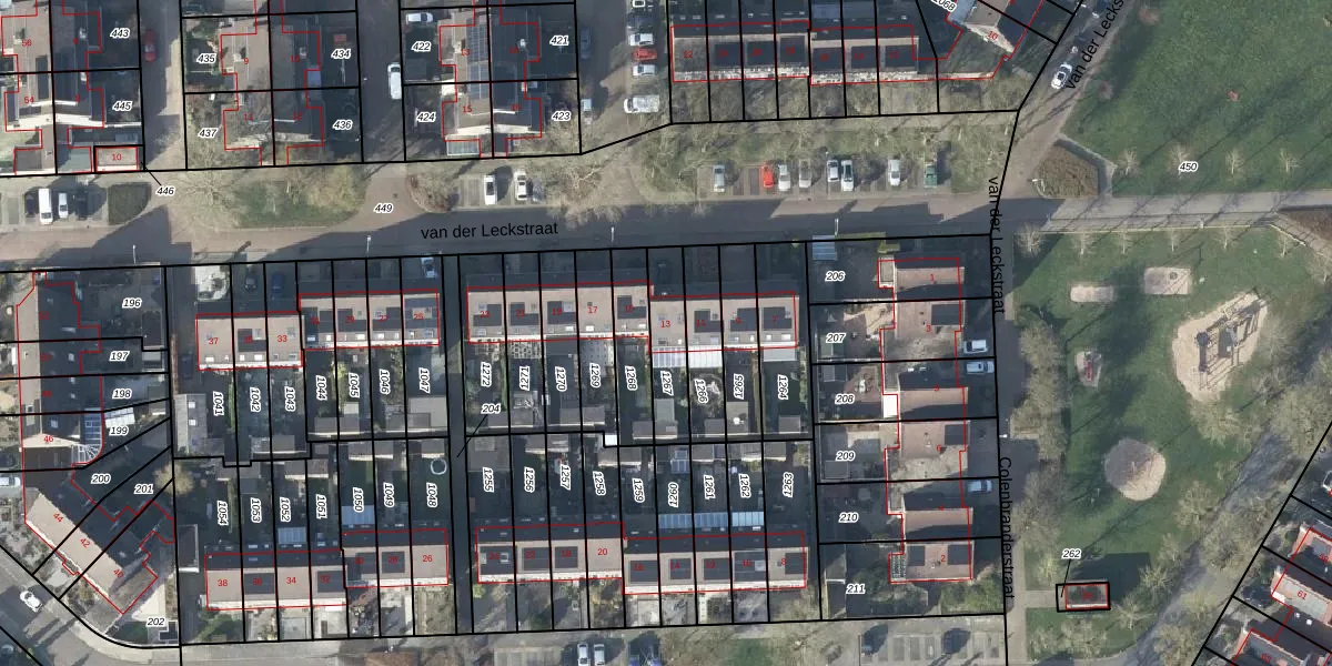 Het perceel waarop van der Leckstraat 13 staat heeft een oppervlakte van 161 m². Dit is een middelgroot perceel. De perceeloppervlakte wordt geregistreerd door het Kadaster. Gedetailleerde informatie over de maten van dit perceel kunt u vinden in het rapport Kadastrale kaart met maatvoering van van der Leckstraat 13.