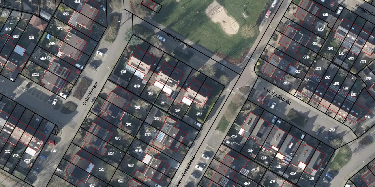 van Eyckstraat 15 is gelegen op kadastraal perceel DVN00G597. Deze kadastrale aanduiding is uniek en wordt gebruikt door het Kadaster om eigendomsrechten en andere zakelijke rechten vast te leggen. Het perceel maakt onderdeel uit van de kadastrale gemeente Duiven.