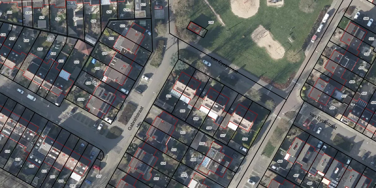 van Eyckstraat 21 is gelegen op kadastraal perceel DVN00G600. Deze kadastrale aanduiding is uniek en wordt gebruikt door het Kadaster om eigendomsrechten en andere zakelijke rechten vast te leggen. Het perceel maakt onderdeel uit van de kadastrale gemeente Duiven.