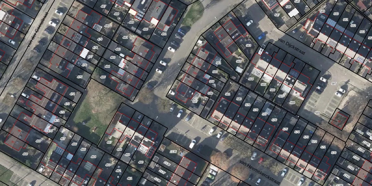 van Heemskerckstraat 107 is gelegen op kadastraal perceel DVN00G557. Deze kadastrale aanduiding is uniek en wordt gebruikt door het Kadaster om eigendomsrechten en andere zakelijke rechten vast te leggen. Het perceel maakt onderdeel uit van de kadastrale gemeente Duiven.