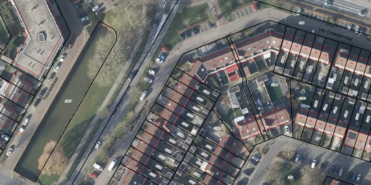 van Ostadestraat 89 is gelegen op kadastraal perceel DVN00G1110. Deze kadastrale aanduiding is uniek en wordt gebruikt door het Kadaster om eigendomsrechten en andere zakelijke rechten vast te leggen. Het perceel maakt onderdeel uit van de kadastrale gemeente Duiven.