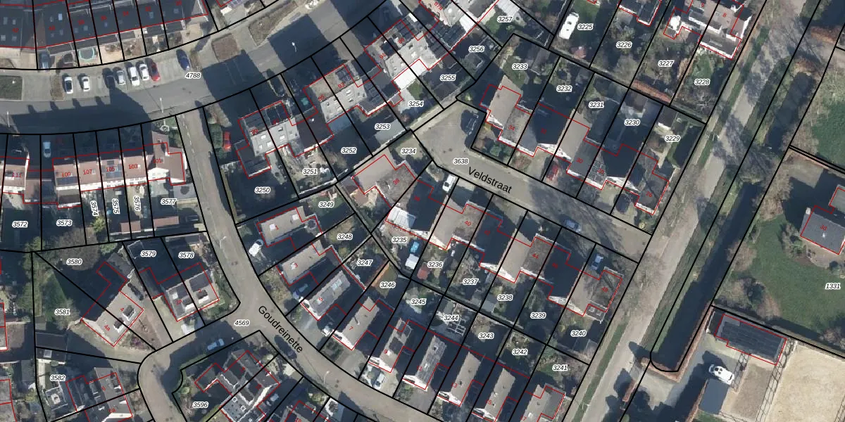 Gebruik de zoekbalk of klik op een perceel voor informatie over de adressen binnen dit perceel.
