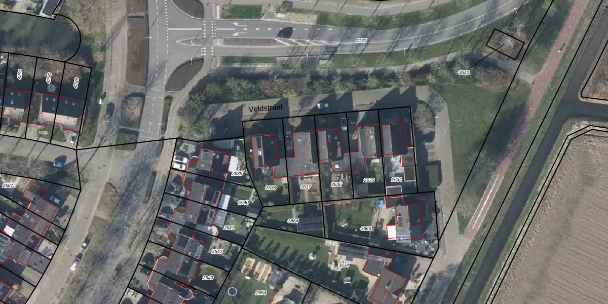 Veldstraat 4 is gelegen op kadastraal perceel DVN00E2637. Deze kadastrale aanduiding is uniek en wordt gebruikt door het Kadaster om eigendomsrechten en andere zakelijke rechten vast te leggen. Het perceel maakt onderdeel uit van de kadastrale gemeente Duiven.