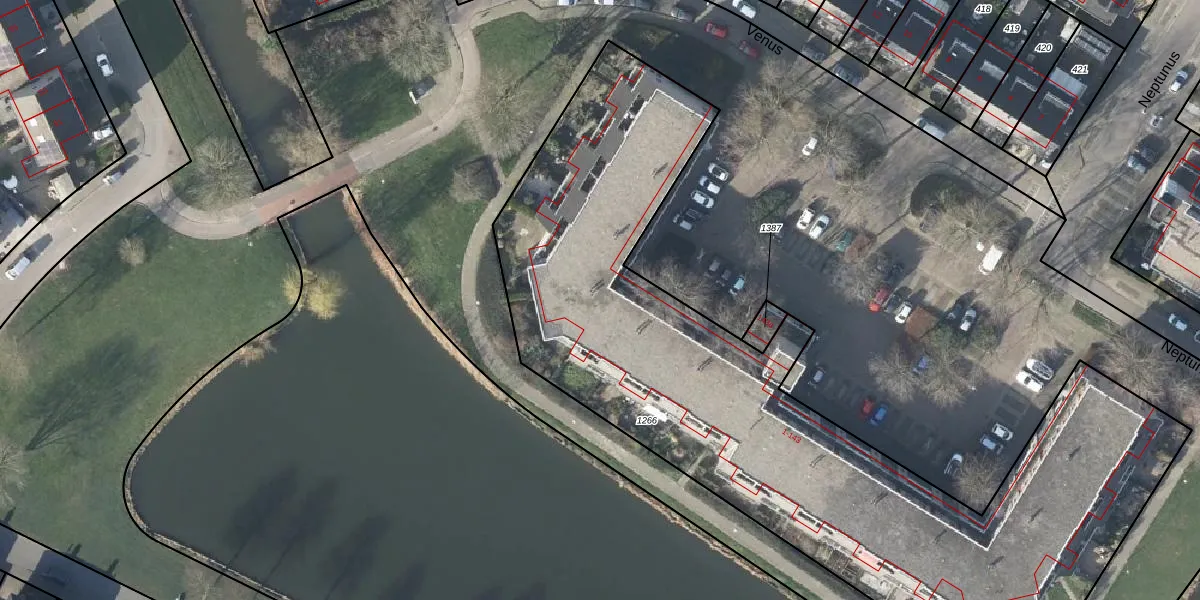 Het perceel waarop Venus 121 staat heeft een oppervlakte van 3735 m². Dit is een zeer groot perceel. De perceeloppervlakte wordt geregistreerd door het Kadaster. Gedetailleerde informatie over de maten van dit perceel kunt u vinden in het rapport Kadastrale kaart met maatvoering van Venus 121.
