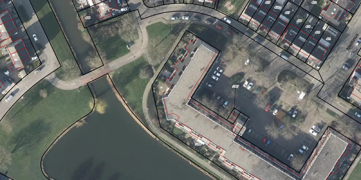 Het perceel waarop Venus 133 staat heeft een oppervlakte van 3735 m². Dit is een zeer groot perceel. De perceeloppervlakte wordt geregistreerd door het Kadaster. Gedetailleerde informatie over de maten van dit perceel kunt u vinden in het rapport Kadastrale kaart met maatvoering van Venus 133.