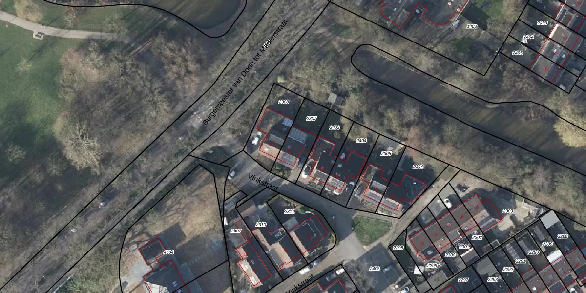 Vinkstraat 28 is gelegen op kadastraal perceel DVN00E2307. Deze kadastrale aanduiding is uniek en wordt gebruikt door het Kadaster om eigendomsrechten en andere zakelijke rechten vast te leggen. Het perceel maakt onderdeel uit van de kadastrale gemeente Duiven.