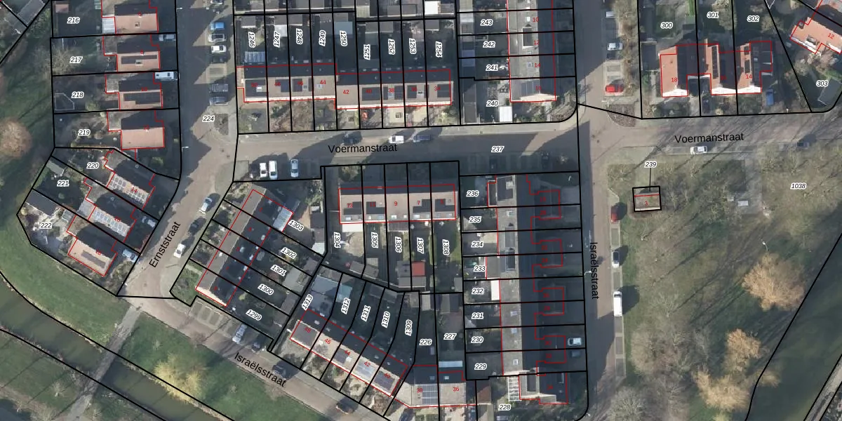 Voermanstraat 7 is gelegen op kadastraal perceel DVN00G1307. Deze kadastrale aanduiding is uniek en wordt gebruikt door het Kadaster om eigendomsrechten en andere zakelijke rechten vast te leggen. Het perceel maakt onderdeel uit van de kadastrale gemeente Duiven.