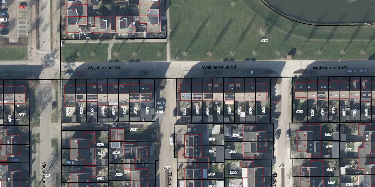 Walcherenstraat 18 is gelegen op kadastraal perceel DVN00E2764. Deze kadastrale aanduiding is uniek en wordt gebruikt door het Kadaster om eigendomsrechten en andere zakelijke rechten vast te leggen. Het perceel maakt onderdeel uit van de kadastrale gemeente Duiven.