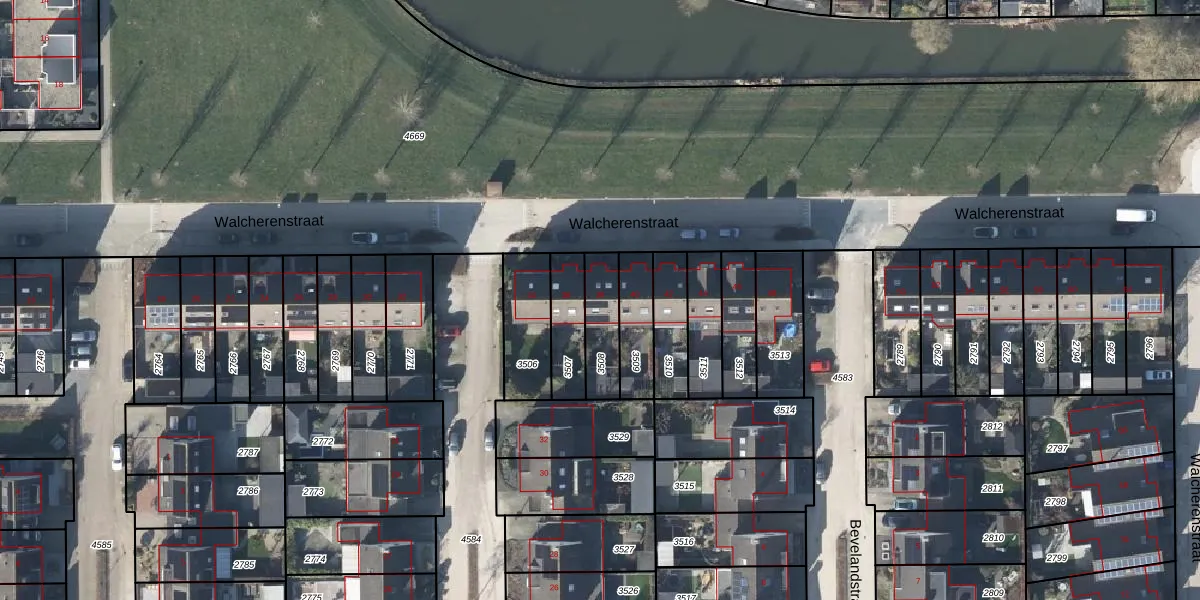 Walcherenstraat 38 is gelegen op kadastraal perceel DVN00E3508. Deze kadastrale aanduiding is uniek en wordt gebruikt door het Kadaster om eigendomsrechten en andere zakelijke rechten vast te leggen. Het perceel maakt onderdeel uit van de kadastrale gemeente Duiven.