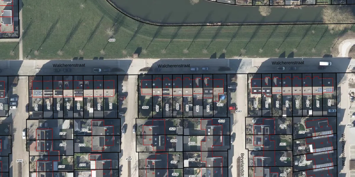 Walcherenstraat 40 is gelegen op kadastraal perceel DVN00E3509. Deze kadastrale aanduiding is uniek en wordt gebruikt door het Kadaster om eigendomsrechten en andere zakelijke rechten vast te leggen. Het perceel maakt onderdeel uit van de kadastrale gemeente Duiven.