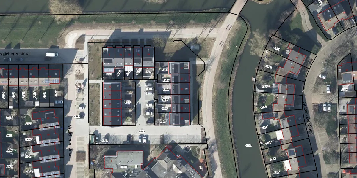 Walcherenstraat 5-b is gelegen op kadastraal perceel DVN00E4846. Deze kadastrale aanduiding is uniek en wordt gebruikt door het Kadaster om eigendomsrechten en andere zakelijke rechten vast te leggen. Het perceel maakt onderdeel uit van de kadastrale gemeente Duiven.