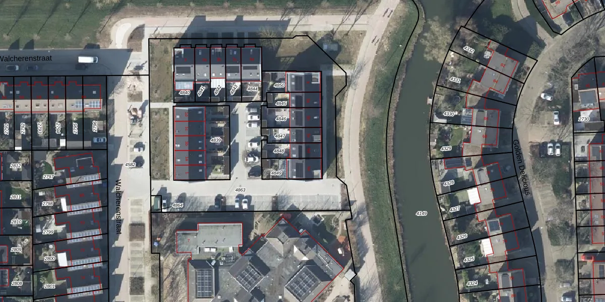 Walcherenstraat 5-d is gelegen op kadastraal perceel DVN00E4848. Deze kadastrale aanduiding is uniek en wordt gebruikt door het Kadaster om eigendomsrechten en andere zakelijke rechten vast te leggen. Het perceel maakt onderdeel uit van de kadastrale gemeente Duiven.