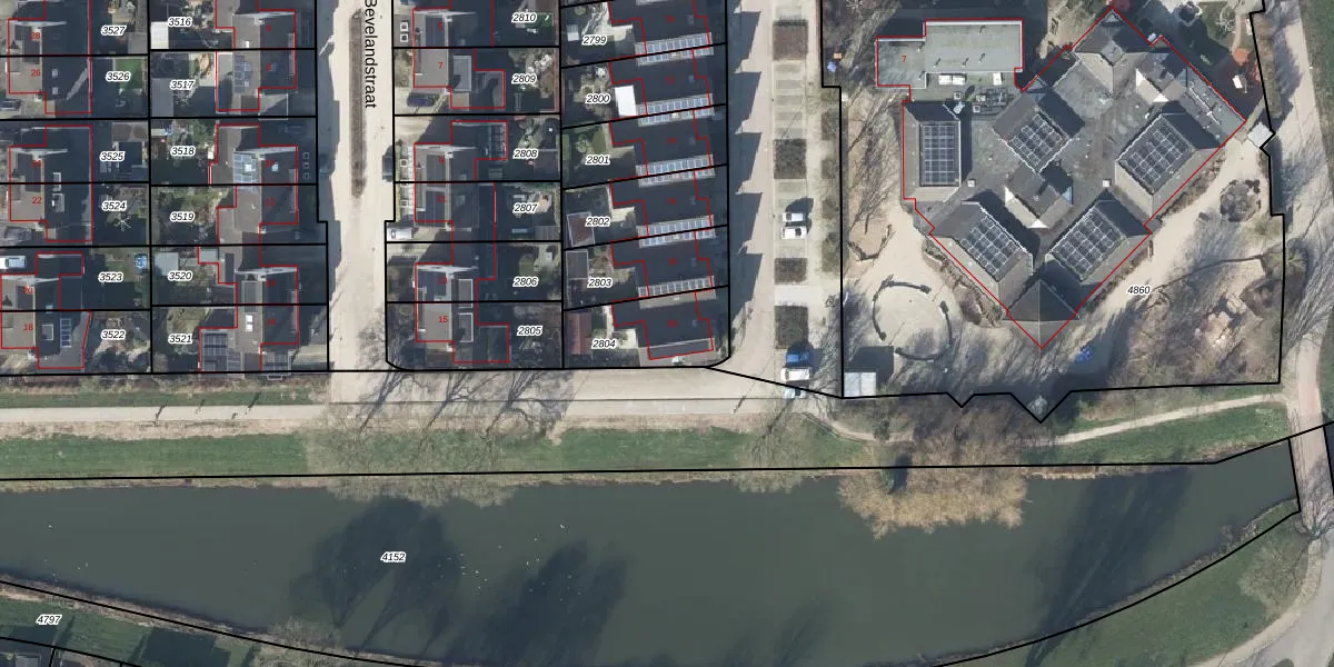 Het adres ligt op het perceel DVN00-E-2804, dat zich in de kadastrale gemeente Duiven bevindt. De gemiddelde perceelgrootte in Duiven is 2659,42 m². Dit perceel is kleiner: de perceeloppervlakte bedraagt 258 m². De grootste perceeloppervlakte in de kadastrale gemeente is 22,4 ha. De kleinste oppervlakte bedraagt 0 m². Dit is het enige adres dat aanwezig is op het perceel. In de Basisregistratie Kadaster (BRK) werden de grenzen van het perceel geregistreerd op 05-11-2003.