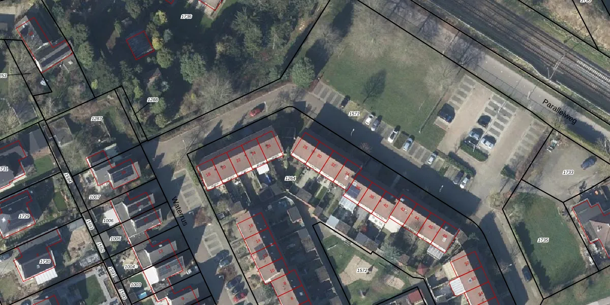 Waterrus 28 is gelegen op kadastraal perceel DVN00D1264. Deze kadastrale aanduiding is uniek en wordt gebruikt door het Kadaster om eigendomsrechten en andere zakelijke rechten vast te leggen. Het perceel maakt onderdeel uit van de kadastrale gemeente Duiven.