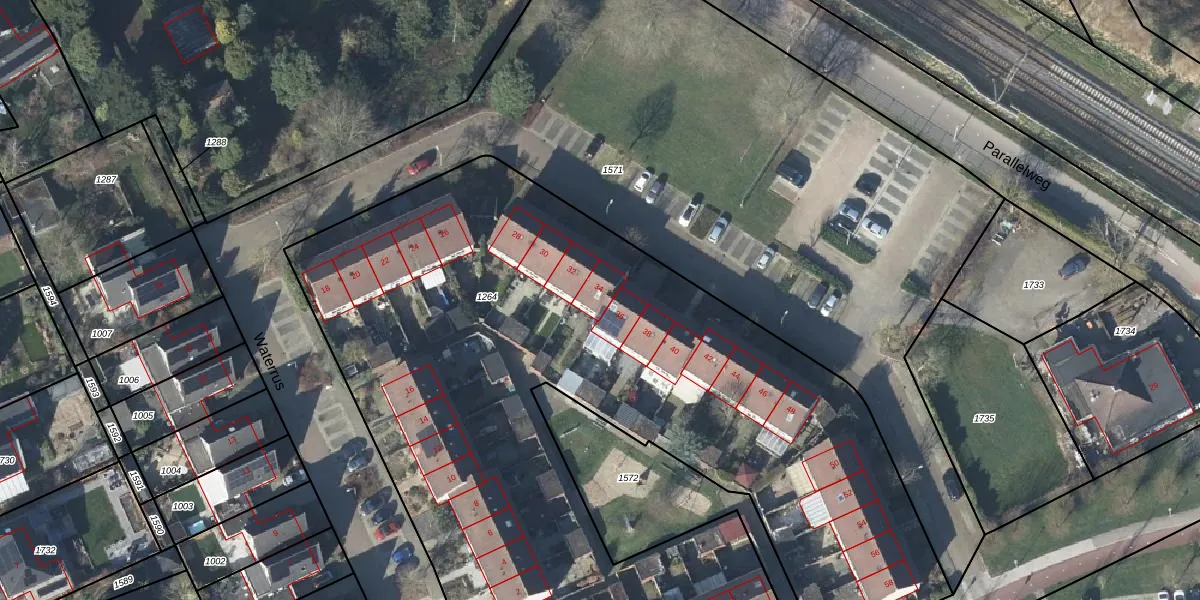 Het perceel waarop Waterrus 34 staat heeft een oppervlakte van 5895 m². Dit is een zeer groot perceel. De perceeloppervlakte wordt geregistreerd door het Kadaster. Gedetailleerde informatie over de maten van dit perceel kunt u vinden in het rapport Kadastrale kaart met maatvoering van Waterrus 34.