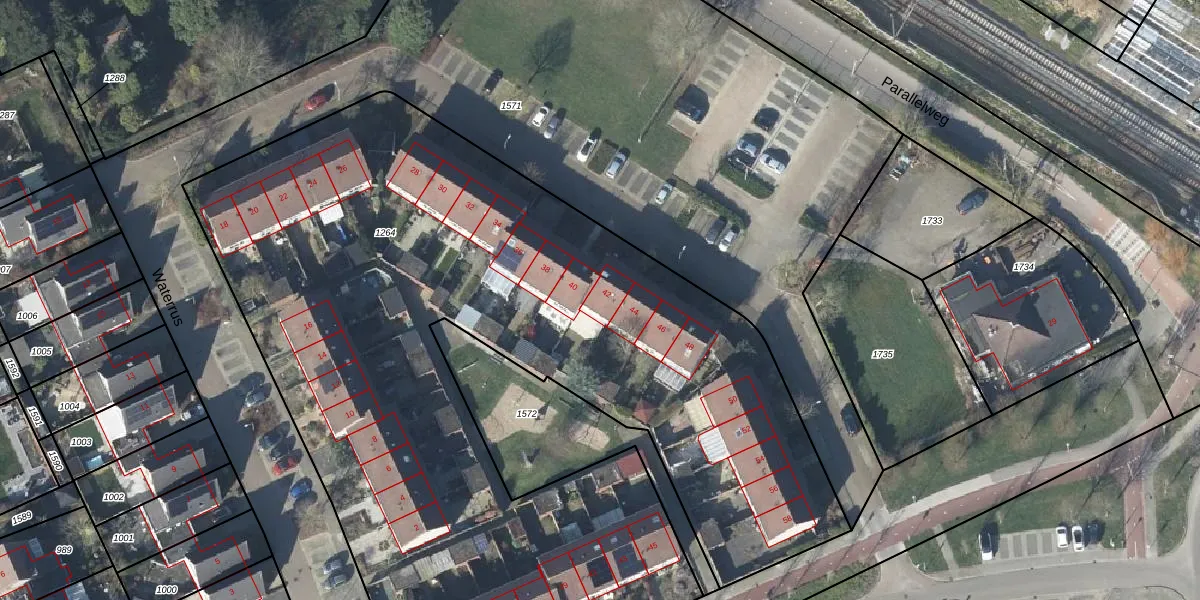 Het perceel waarop Waterrus 42 staat heeft een oppervlakte van 5895 m². Dit is een zeer groot perceel. De perceeloppervlakte wordt geregistreerd door het Kadaster. Gedetailleerde informatie over de maten van dit perceel kunt u vinden in het rapport Kadastrale kaart met maatvoering van Waterrus 42.