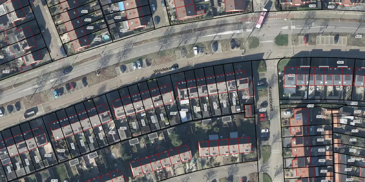 Het perceel waarop Weidekervel 111 staat heeft een oppervlakte van 197 m². Dit is een middelgroot perceel. De perceeloppervlakte wordt geregistreerd door het Kadaster. Gedetailleerde informatie over de maten van dit perceel kunt u vinden in het rapport Kadastrale kaart met maatvoering van Weidekervel 111.