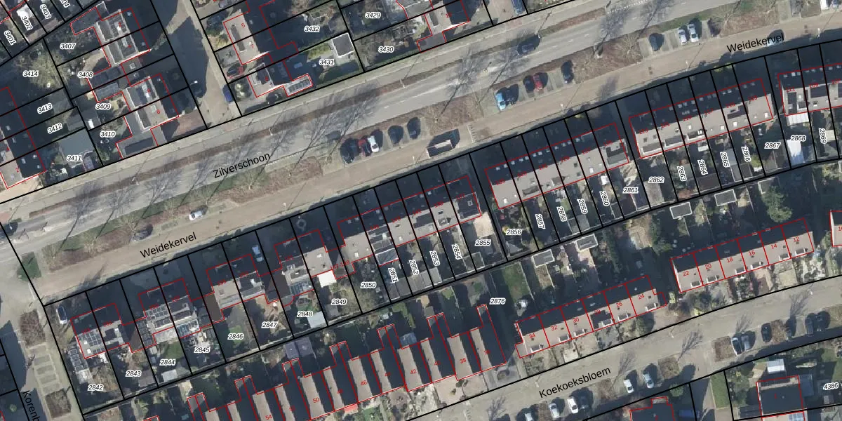 Weidekervel 141 is gelegen op kadastraal perceel DVN00E2853. Deze kadastrale aanduiding is uniek en wordt gebruikt door het Kadaster om eigendomsrechten en andere zakelijke rechten vast te leggen. Het perceel maakt onderdeel uit van de kadastrale gemeente Duiven.
