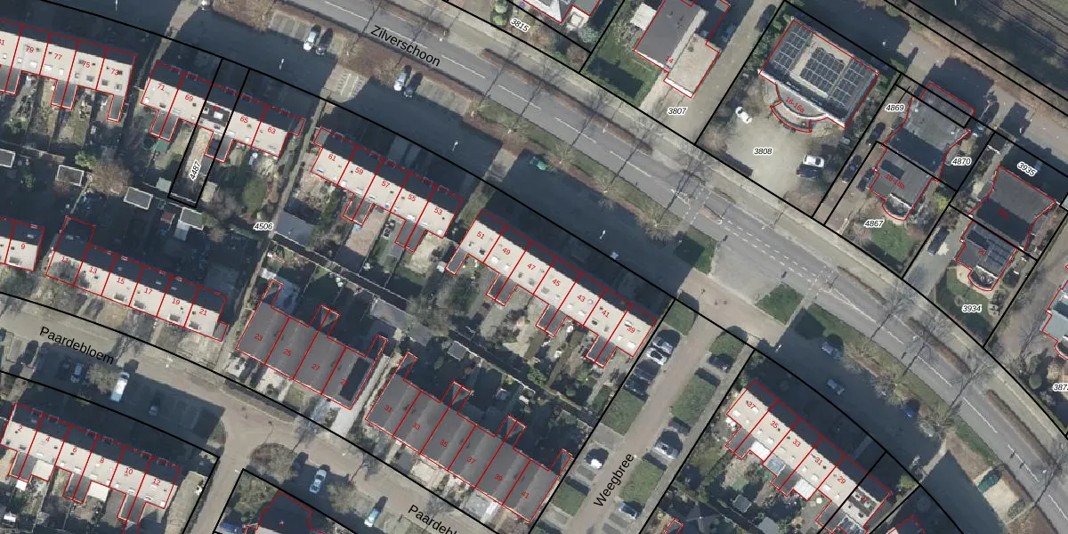 Het perceel waarop Weidekervel 47 staat heeft een oppervlakte van 7563 m². Dit is een zeer groot perceel. De perceeloppervlakte wordt geregistreerd door het Kadaster. Gedetailleerde informatie over de maten van dit perceel kunt u vinden in het rapport Kadastrale kaart met maatvoering van Weidekervel 47.