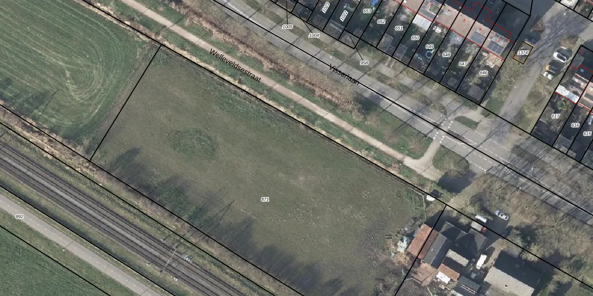 Welleveldsestraat 2-c is gelegen op kadastraal perceel DVN00G871. Deze kadastrale aanduiding is uniek en wordt gebruikt door het Kadaster om eigendomsrechten en andere zakelijke rechten vast te leggen. Het perceel maakt onderdeel uit van de kadastrale gemeente Duiven.