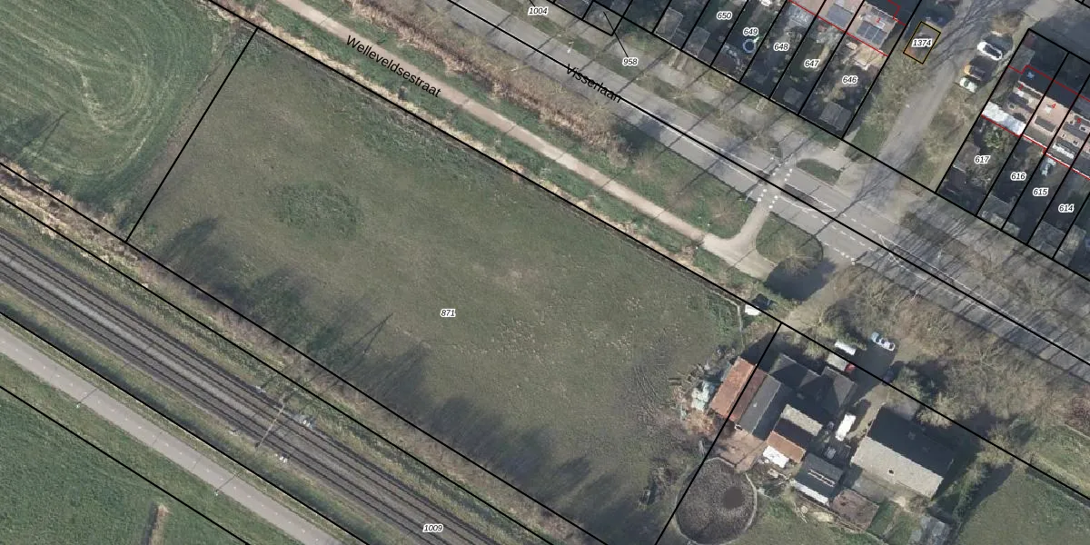 Welleveldsestraat 2-k is gelegen op kadastraal perceel DVN00G871. Deze kadastrale aanduiding is uniek en wordt gebruikt door het Kadaster om eigendomsrechten en andere zakelijke rechten vast te leggen. Het perceel maakt onderdeel uit van de kadastrale gemeente Duiven.