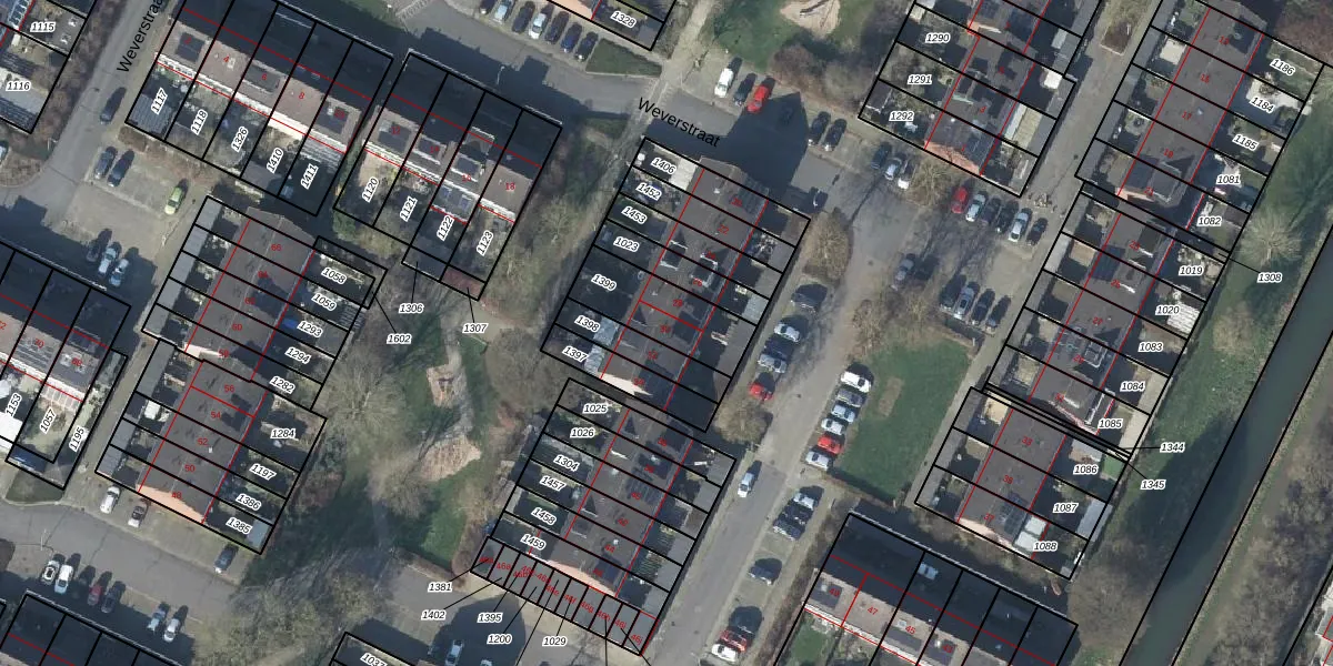 Weverstraat 30 is gelegen op kadastraal perceel DVN00C1399. Deze kadastrale aanduiding is uniek en wordt gebruikt door het Kadaster om eigendomsrechten en andere zakelijke rechten vast te leggen. Het perceel maakt onderdeel uit van de kadastrale gemeente Duiven.