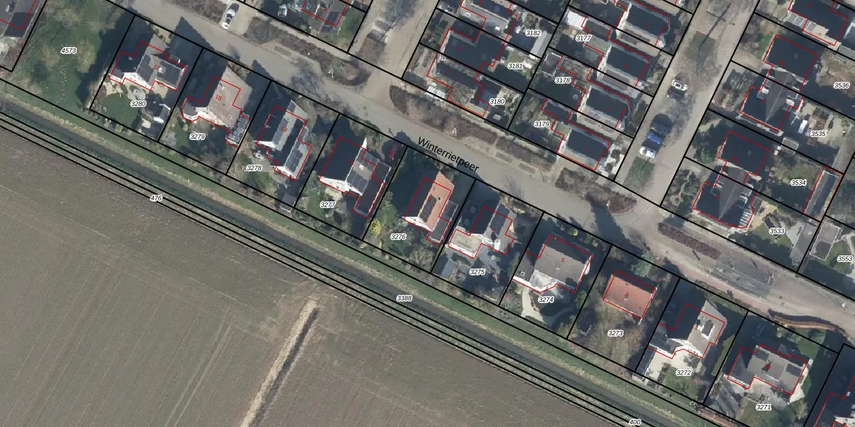 Winterrietpeer 9 is gelegen op kadastraal perceel DVN00E3276. Deze kadastrale aanduiding is uniek en wordt gebruikt door het Kadaster om eigendomsrechten en andere zakelijke rechten vast te leggen. Het perceel maakt onderdeel uit van de kadastrale gemeente Duiven.